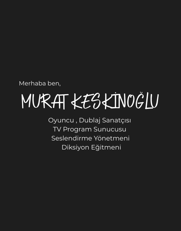 1972’ de Ankara’da doğdu. Uluslararası İlişkiler okudu. Birçok kurumdan aldığı tiyatro eğitiminin yanı sıra Müjdat Gezen Sanat Merkezi Akşam Okulu tiyatro bölümünü bitirdi. Bilgisayar programcılığı eğitimi aldı. Aynı zamanda uzun yıllar clup ve Radyo DJ’liği yaptı. 1994 yılında dublaj hayatına başlayan Murat KESKİNOĞLU birçok yerli ve yabancı filmlerde seslendirme yönetmenliği , yönetmen yardımcılığı ve seslendirme yapmıştır. Yetişkin ve çocuk tiyatro oyunlarında , dizi, kısa filmler ve reklam filmlerinde rol aldı. Ayrıca çeşitli televizyon kanallarında ( ATV – Show TV – ShowMax ) yarışma programı hazırladı ve sundu. Halen aktif olarak seslendirme yönetmenliği ve seslendirme yapmaktadır.